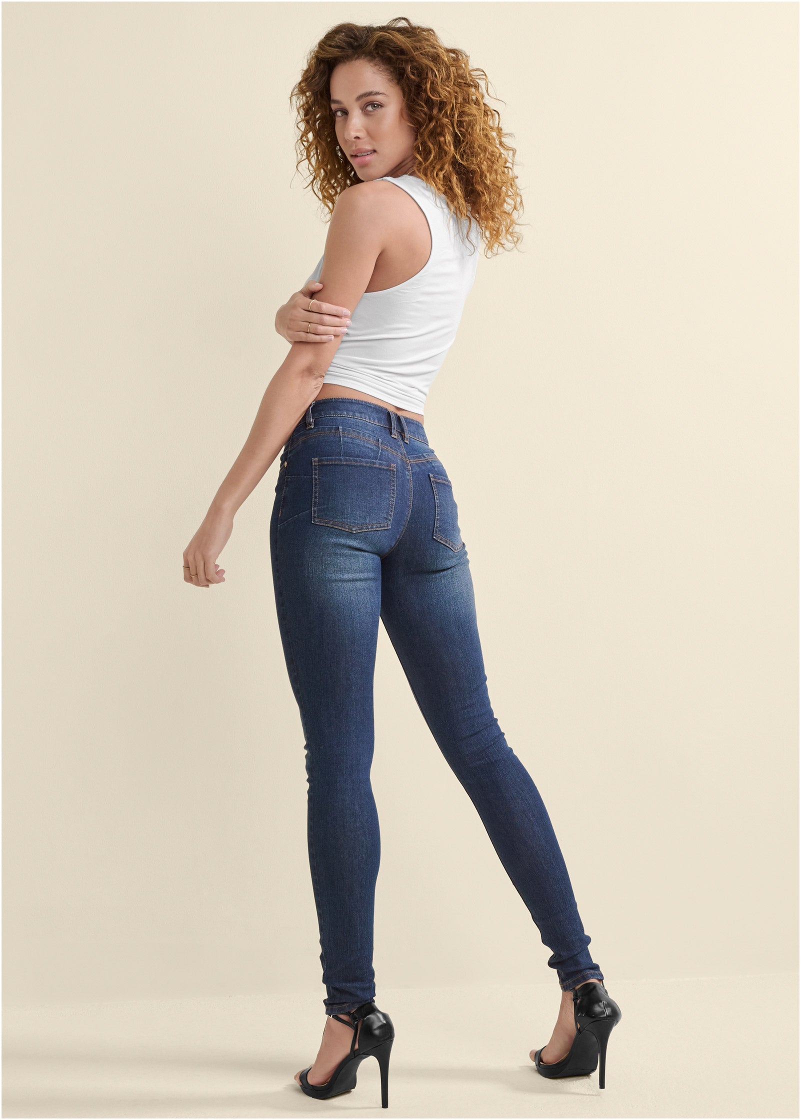 Say hello to the Lift, our best-selling, curve-enhancing jeans with a new look. Contoured seams along the back pockets and a sweetheart-shaped yoke below the waistband give the illusion of a lifted, curvier booty. You’ll love this figure-flattering pair so much, you’ll never want to take them off. * Available in plus sizes * Mid rise * 5-pocket styling * Button and zipper closure * 9” rise with 10” leg opening * Inseams: 29" (S), 31" (R), 33" (L) * White denim has minimal stretch; all other washes have more stretch * WH: Cotton/spandex. Imported * BKDE, DW, MW: Cotton/poly/spandex. Imported