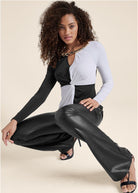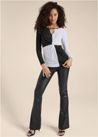 Color Block Chain Neck Top - Black & White