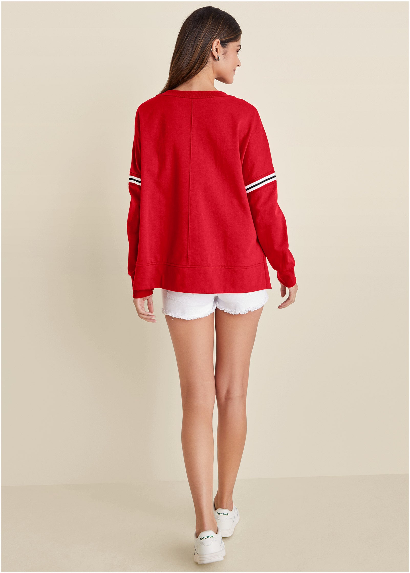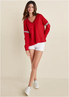 This super-soft French terry sweatshirt is made for lounging and living. With its versatile v-neckline and thoughtfully relaxed silhouette, this piece effortlessly elevates your look from casual to chic. The side slit details offer an airy feel with a beautifully draped look.