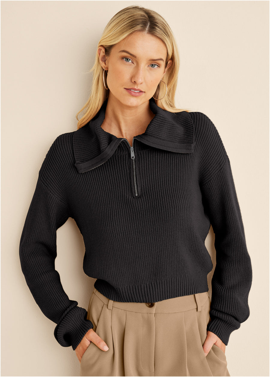We love when cozy-comfort meets easy-elegance and this cropped quarter-zip sweater is exactly that. It's classic, yet the oversize foldover collar makes it a subtle standout. It's perfectly slouchy yet polished at the same time. Pair this knit with high-waist trousers for a chic work look or team with comfy joggers for off-duty moments.