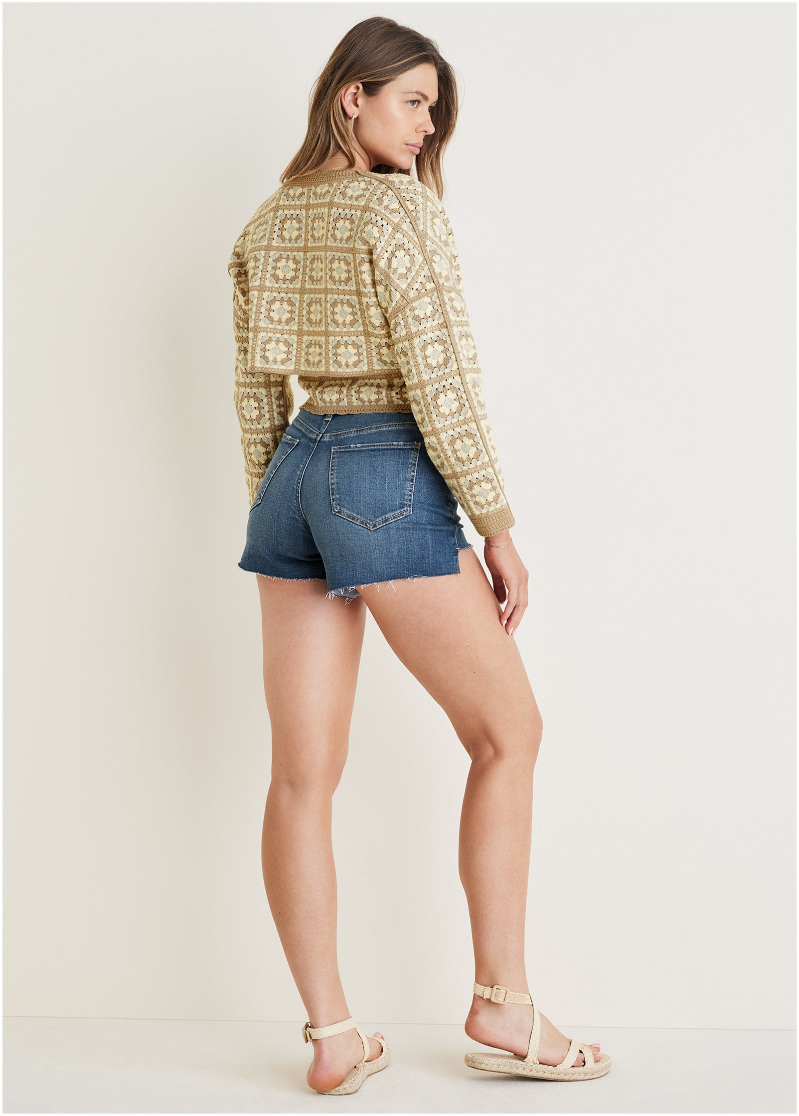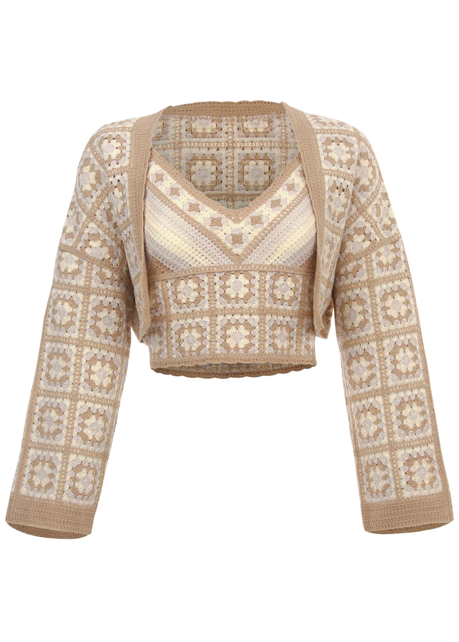 Have a matching moment in this cropped cardigan and tank set. Each crochet piece has a hand-made look that feels one-of-a-kind. Wear them together or style each piece solo. Either way the woven details add major vacation vibes to your look.