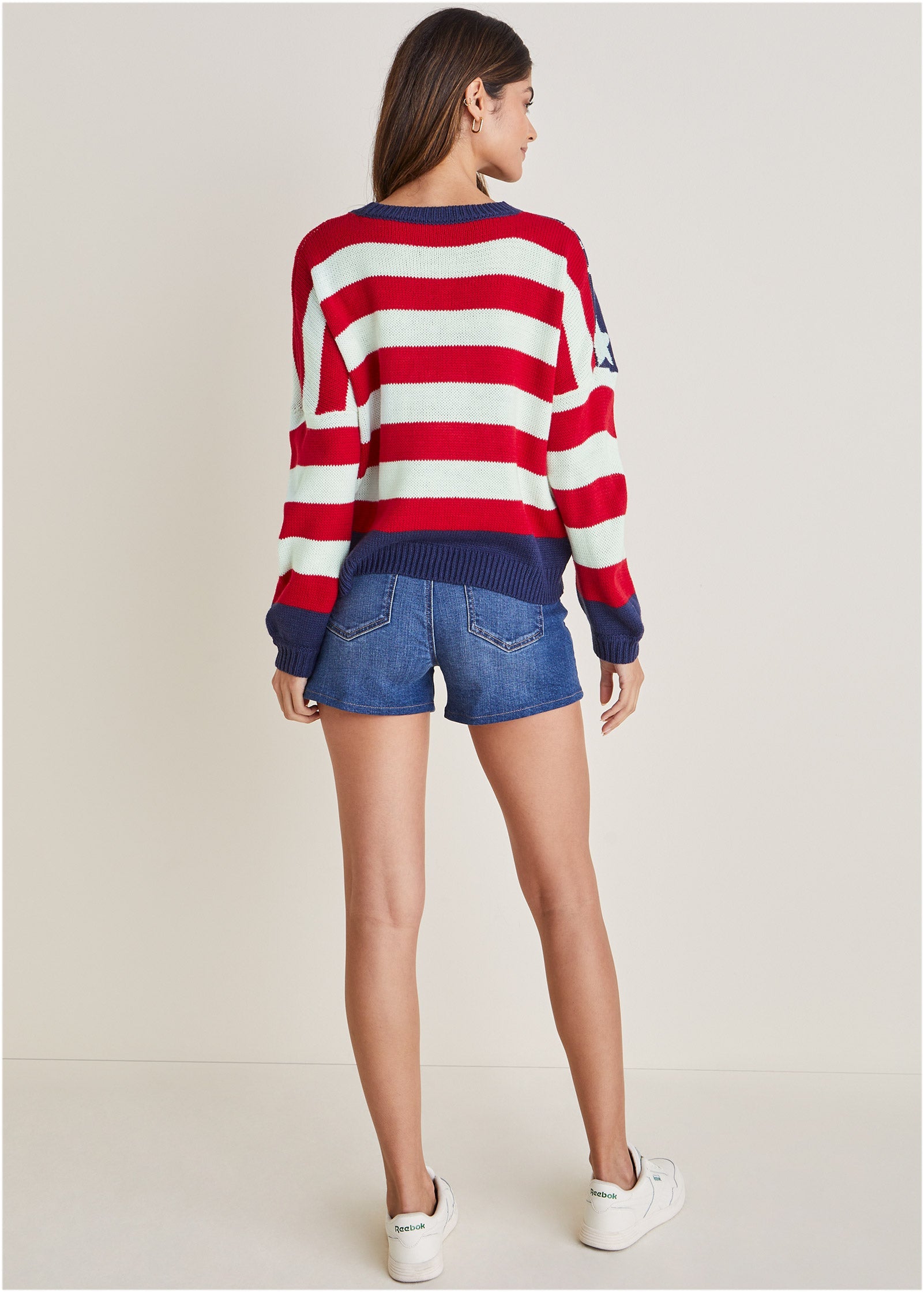 Make stars and stripes your summer wardrobe anthem. This thoughtfully-relaxed flag sweater will have you looking like an all-American style icon for all of your long-weekend celebrations. You can’t go wrong pairing it with classic denim, but we also love this lightweight knit tossed over a swimsuit at the beach.