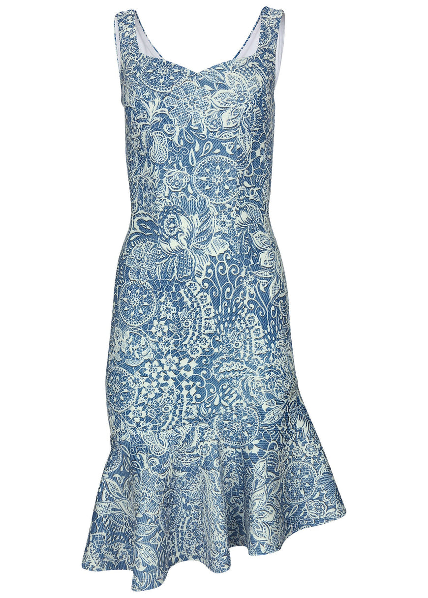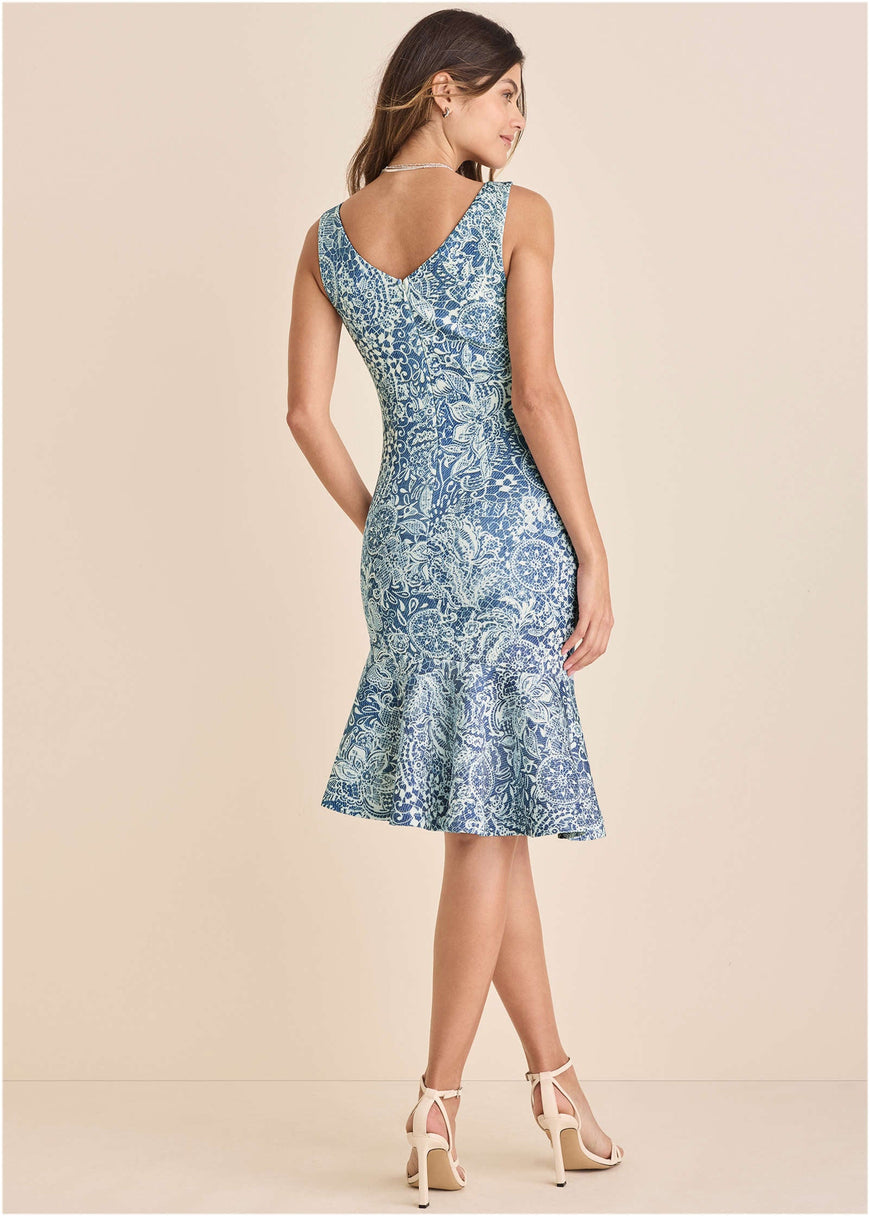 Ruffle Trim Detail Dress - Denim Anglaise Paisley