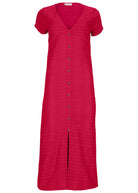 This dress is a sunny-day dream. For starters, it's done in our easy and breathable AirLight Linen that's perfect for hot weather. The plunge neckline meets its match in a leggy front slit, both of which balance out the short sleeves and midi hemline. With delicate buttons down the front and a comfy smocked waist in back, this dress will be your new fave. * Available in plus sizes * Short sleeves * Deep V-neck * Decorative button front * Smocked waist at back * Midi length, approx. 48" * Runs small in bust; size up for a better fit * AirLight Linen (Cotton. Imported)