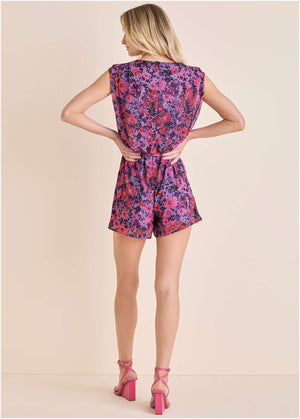 Sleeveless Romper - Ditsy Pink Purple